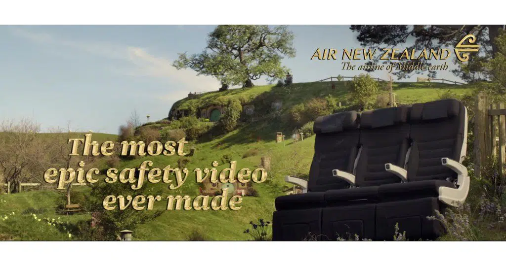 Air New Zealand has done again,? if you fly with them you will watch this safety video. In it you can see characters and actors from the movies Lord of the Rings in a main role like passengers or cabin crew.